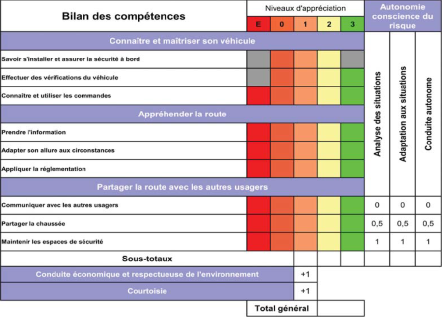 Cette évaluation est proposée aux candidats ayant déjà fait des leçons de conduite ou étant déjà titulaire du permis de conduire pour perfectionnement.